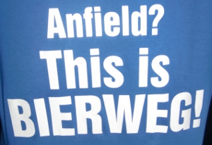 Die Mannschaftsfahrt nach Düsseldorf. Wir trafen uns am Freitag am Hauptbahnhof in Wolfsburg.  Sogar der Trainer Sven Schimak schaffte es zum Treffen und verabschiedete die Truppe und überreichte uns sogar noch ein paar „Präsente“ für die Fahrt. Mit 20 Mann ging es dann los in Richtung Düsseldorf. Alle wurden natürlich eingekleidet mit „blau-weißen“ Shirts, mit dem Motto der Mannschaftsfahrt auf der Brust „Anfield? THIS IS BIERWEG!“. Auf der Fahrt hatten alle sichtlich Spass und es wurde viel gelacht und gefeiert, die Vorfreude auf Düsseldorf war allen anzumerken. Nach dem wir in Düsseldorf angekommen waren und alle in unserem Hotel eingecheckt hatten, ging der Partymarathon dann weiter. Erst wurde im Hotel und dann in der Partymeile von Düsseldorf, der schönen Altstadt gefeiert. „Oberbayern“, „Kuhstall“ und „Zum Hirsch“ hießen einige der Partyschuppen. Die Altstadt war aber auch so gerammelt voll und wir waren mal wieder nicht die Einzigen, die den Weg nach Düsseldorf fanden und als Ziel für die Mannschaftsfahrt gewählt hatten. Nach einer langen Partynacht, trafen die letzten um 7 Uhr morgens wieder im Hotel ein.